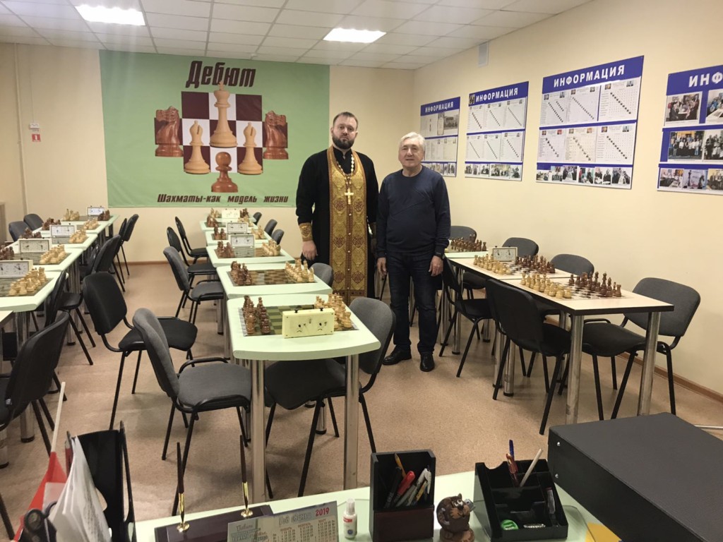 8.12.2019 благочинный церквей Калтанского округа протоиерей Сергий Добровольский совершил освящение нового помещения Шахматной Школы «Дебют» г. Калтан. После освящения и экскурсии, в ходе беседы с директором шахматной школы В.С.Кияновским было принято решение о дальнейшем сотрудничестве, в виде проведения духовных бесед с учащимися.